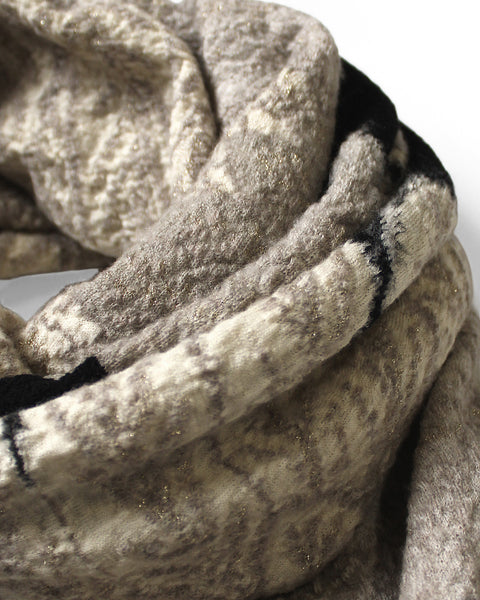 Nice and soft all wool scarf with contrast jaqcuard knit soaring eagle design that features woven in lamé threads for a cool silvery effect.