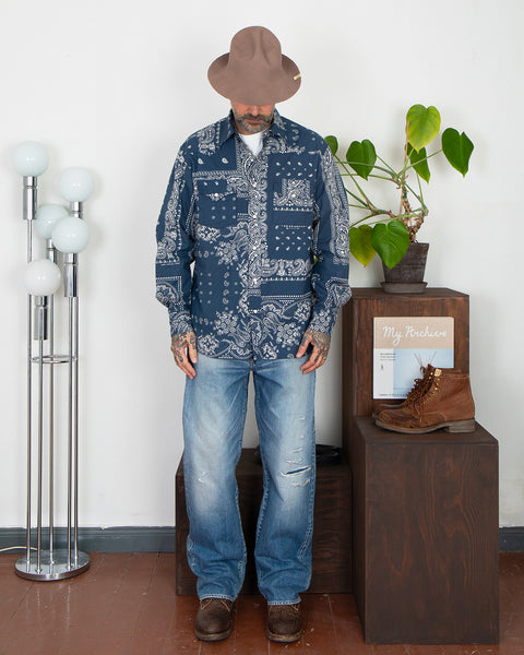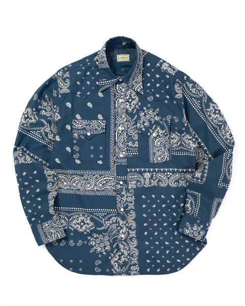 * Kapital Viyella Flannel Bandanna Husky Western Shirt, Navy.