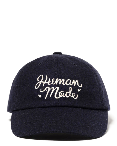 6 Panel cap made from wool / nylon fabric. Adjustable size (leather adjuster), embroidery detailing.