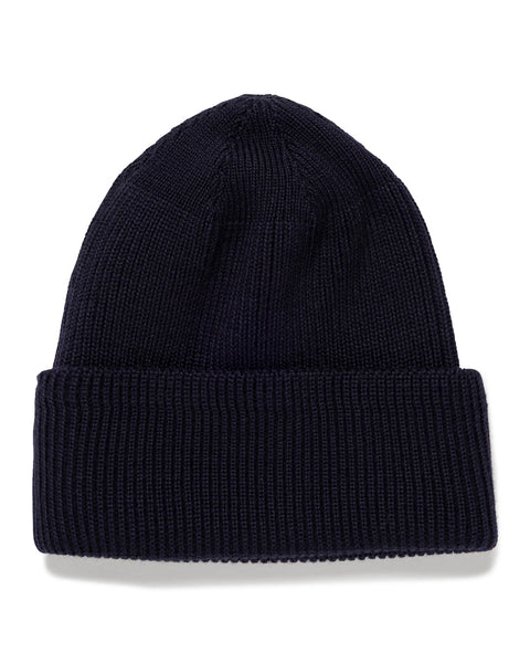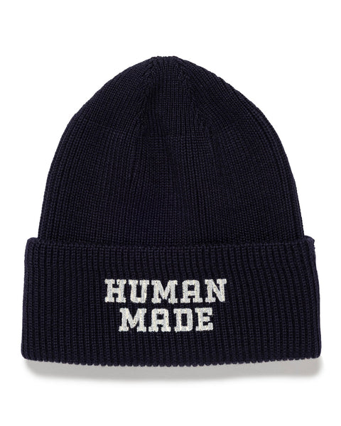 Military watch cap made from soft wool fabric. "Human Made" print on front.