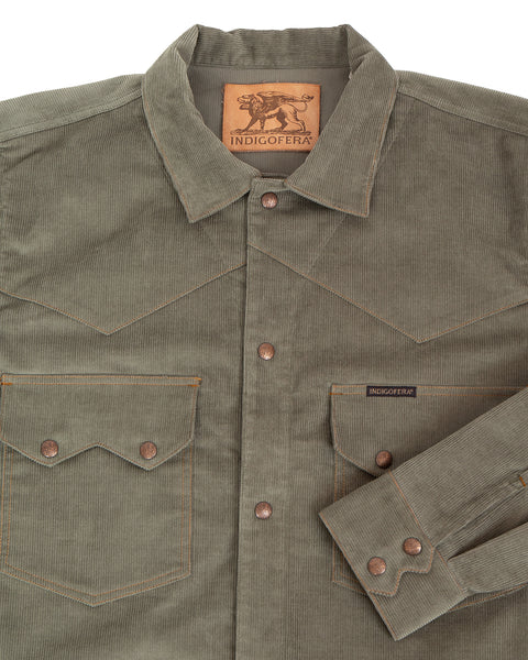 * Indigofera Cooper Shirt, 13W Corduroy, Stone Green.
