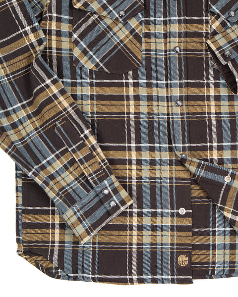 Indigofera Dawson Shirt, Flannel Check, Brown / Olive / Turquoise / Ecru.