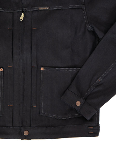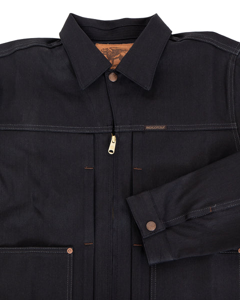 Wibaux jacket, made from broken twill fabric. Features two large front pockets and custom Indigofera zipper.