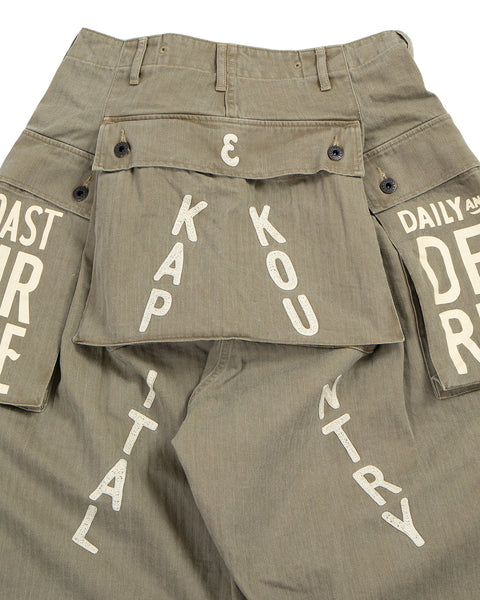 * Kapital Herringbone Jumbo Monkey Pants (Factory-Repair & Embroidery), Khaki.
