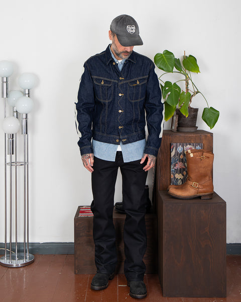 Wyatt is a bootcut fit jean with a high waist and flat front. Cut from 14oz broken twill denim. Button fly and gryphon leather patch on back pocket.