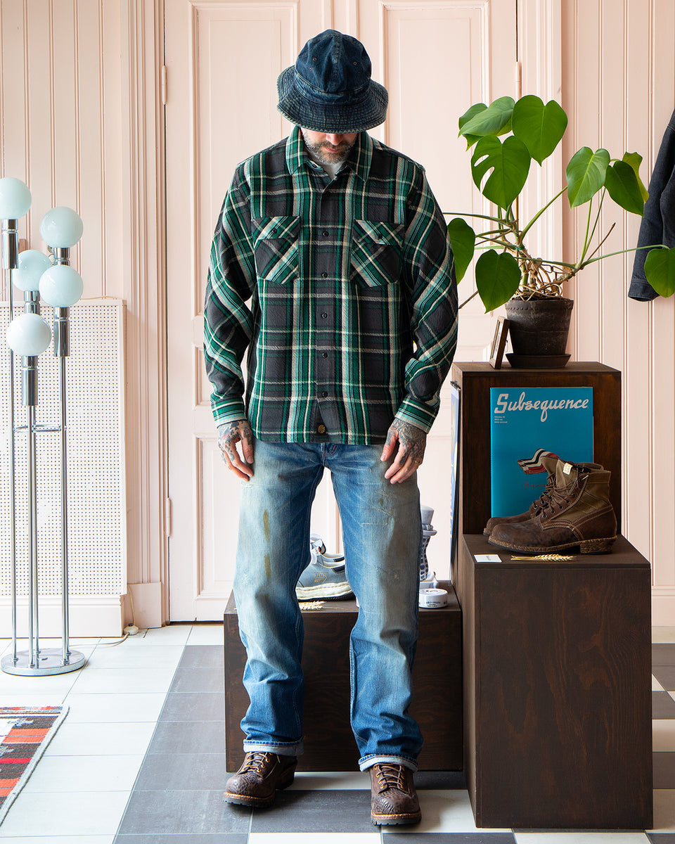 Indigofera Kurt Jacket, Desert Moss Green Selvage Indigofera Kurt Jacket, Desert Moss Green Selvage