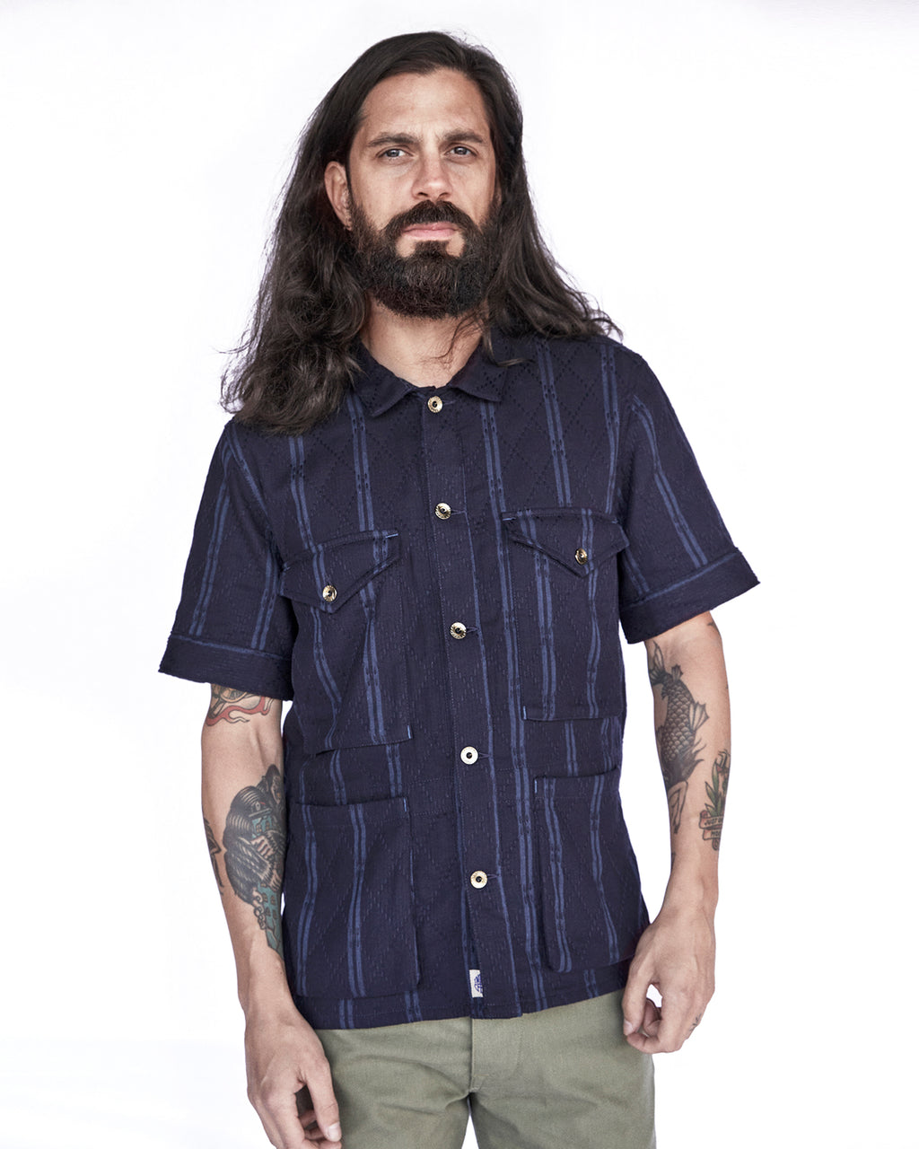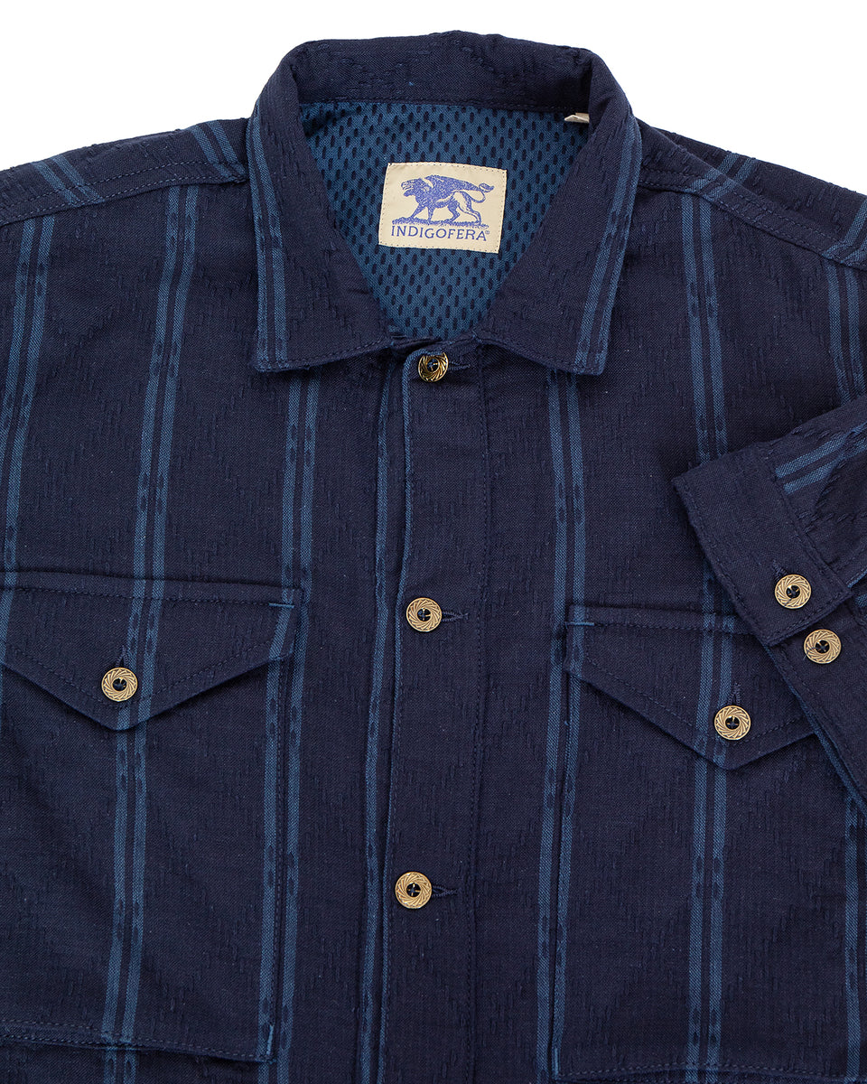 Indigofera Rivera Shirt, Indigo Sashiko Stripe Indigofera Rivera Shirt, Indigo Sashiko Stripe
