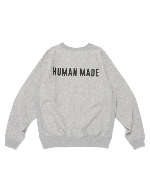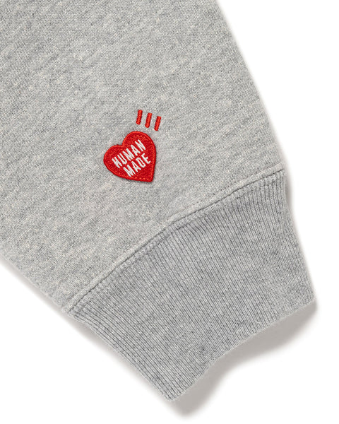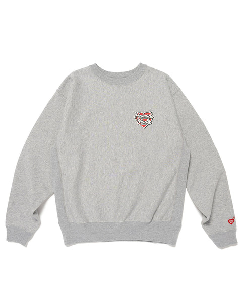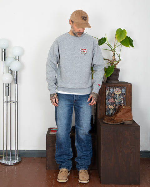 Human Made sweatshirt made from a thick cotton fabric. Features a front heart logo print, back print and small heart logo patch near cuff.
