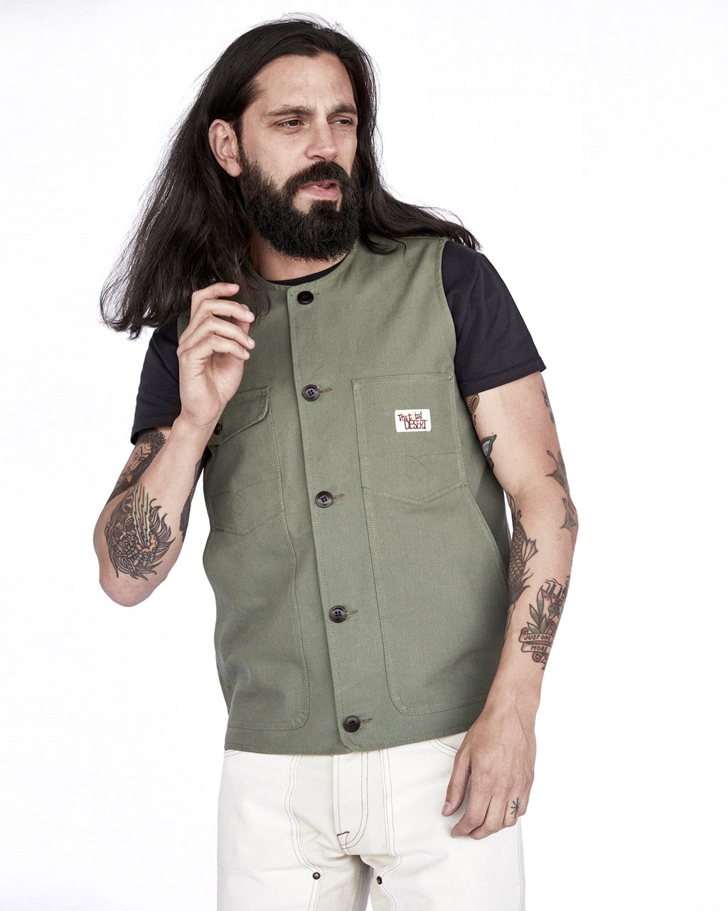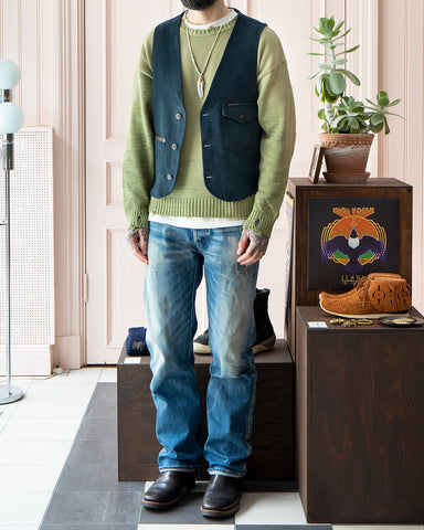 Indigofera x Björn Atldax, Iconic Vest, Bedford Cord, Root of All Evil