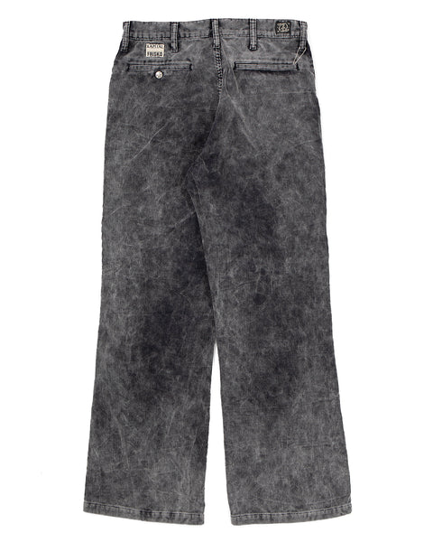 Frisko pants made from a washed cotton corduroy fabric. Features double front / back pockets. A waist snap button closure / zipper fly. Center Pleated.