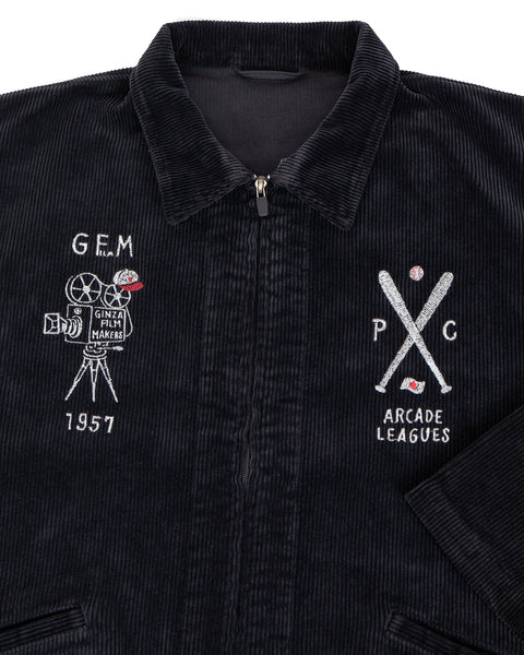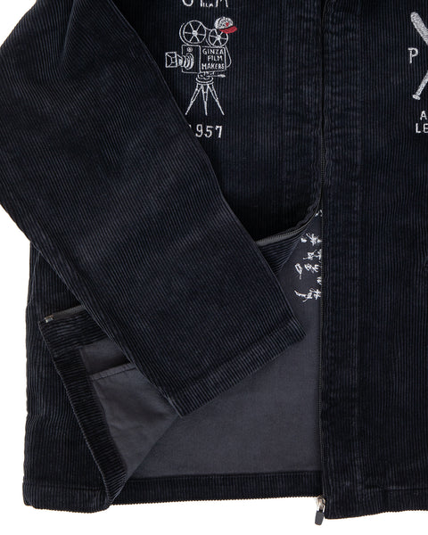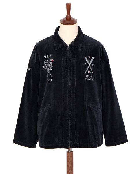 Zip up jacket made from cotton corduroy fabric. Features a zipped front, two waist pockets and embroidery detailing front and back.
